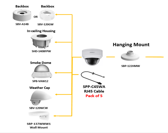 Vonkajšia vandal kopulová kamera Wisenet série A2MP @ 30 FPS2,8 mm pevná ohnisková vzdialenosťFoV H: 113,7°/ V: 61,5°WiseStream IItrojitý kodek (H.265/H.264/MJPEG)120dB WDRIR LED 30 m (98,43 stôp)deň a noc (ICR)virtuálna oblasť (vniknutie/vstup/výstup)virtuálna čiara (prechod/smer)detekcia pohybutamperingpohľad na výškuSD kartaIP66IK10PoEbiely.