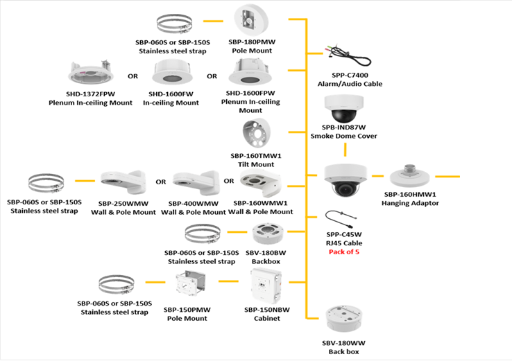 Závesný montážny adaptér určený pre bezpečnostné kamery Hanwha Vision série WiseNet. Umožňuje pevné a bezpečné uchytenie kamery pri stropnej alebo zníženej montáži.