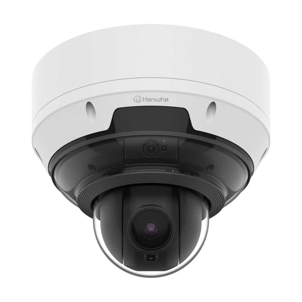 AI?multidirectional IP kamera kombinujúca tri 5?MP pevné objektívy s 4?MP 18× PTZ kamerou pre kompletné pokrytie a detailný zoom v jednom zariadení. Model ponúka pokročilé AI detekcie (osoby, tváre, vozidlá, poznávacie značky), WiseStream/WiseNR?II a robustné vyhotovenie pre náročné vonkajšie aplikácie.