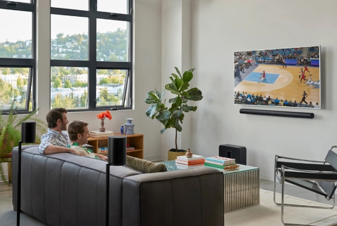 Používajte Era 100 SL samostatne, spojte dva pre stereo zvuk, pripojte ich ku kompatibilnému soundbaru pre priestorový zvuk alebo ich umiestnite do viacerých miestností, aby ste hudbou zaplnili celú domácnosť.