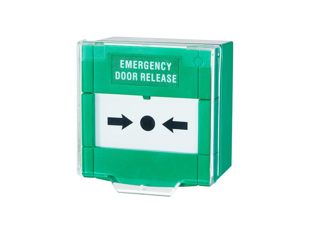 Tlačidlo núdzového otvorenia dverí, resetovateľné, zelená farba, dva páry kontaktov COM/NC/NO 250VAC 5A, prelamovací plast, ochrana proti náhodnému stlačeniu, kľúčik súčasťou balenia. Vhodné pre montáž na povrch na inštalačnú krabicu v balení a aj pre montáž na štandardnú zápustnú elektrickú krabicu vo vnútornom prostredí. Kombinovaná navigácia na tlačidle v slovenskom „NUDZOVE OTVORENIE“ a anglickom „EMERGENCY OPENING“ jazyku. Zhoda s normou EN54-11.