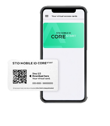 STid Mobile ID® CORE Start Virtuálna karta (PC3), 2 režimy identifikácie – karta a diaľková identifikácia (Card & Remote), podporovaný formát údajov Wiegand 26 a 37 bitov, použiteľné s čítačkami s nastavením Core PC3, Jednorazové a bezpečné doručenie – sťahovanie pomocou QR kódu, Anonymné – nevyžaduje sa e-mail, čo uľahčuje implementáciu na osobných smartfónoch a nie je potrebná žiadna infraštruktúra , pretože na vydávanie virtuálnych kariet nie je potrebný žiadny účet, žiadna platforma a ani server. Zabezpečenie nastavené výrobcom priamo z výroby. Jednoduchý predaj. Jednoduchá distribúcia. Jednoduché použitie.